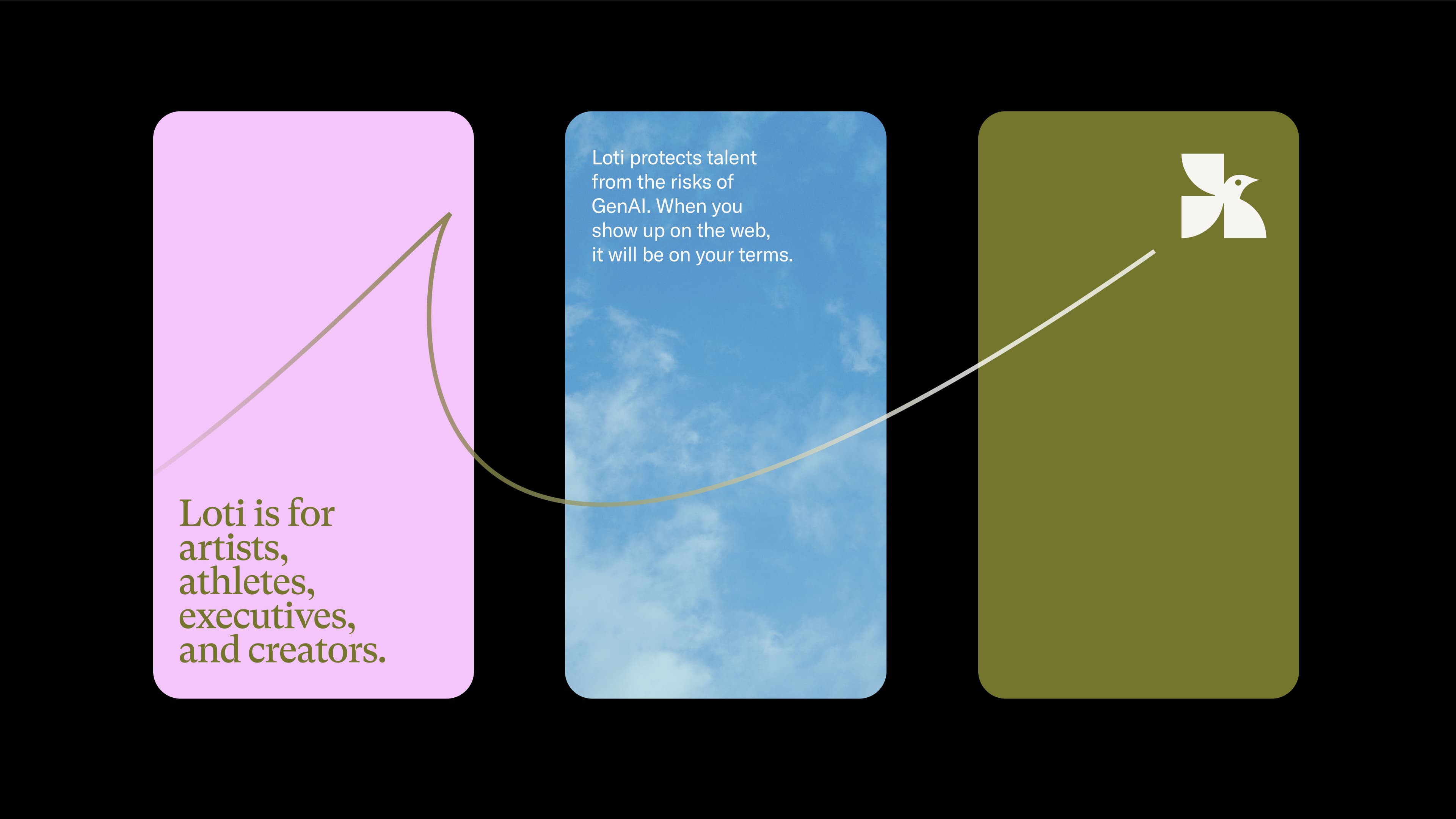 Loti uses AI to protect your voice, face, and likeness online. They came to us for a brand that balanced consumer warmth with enterprise-grade security—part digital wellness, part surveillance shield. We created a cinematic identity built on blurs, reveals, and concealment, centered around a custom bird symbol with a watchful, bird’s-eye view of the internet. We also designed and build their dynamic new site: www.lotiai.com